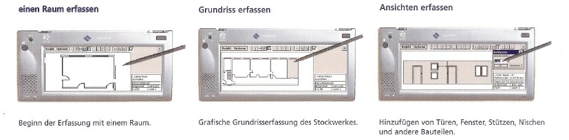 Massaufnahme Nach der Bau-/ Projektbesprechung erfolgt das Aufmass. Mit Hilfe von Messinstrumenten (Zollstock, Bandmass, Laser, etc.) und einem Handheld PC wird mit dem Aufmessen begonnen.